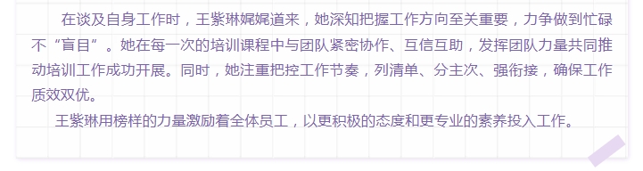 榜样 | 培训专员王紫琳:以专业与敬业,助力企业前行